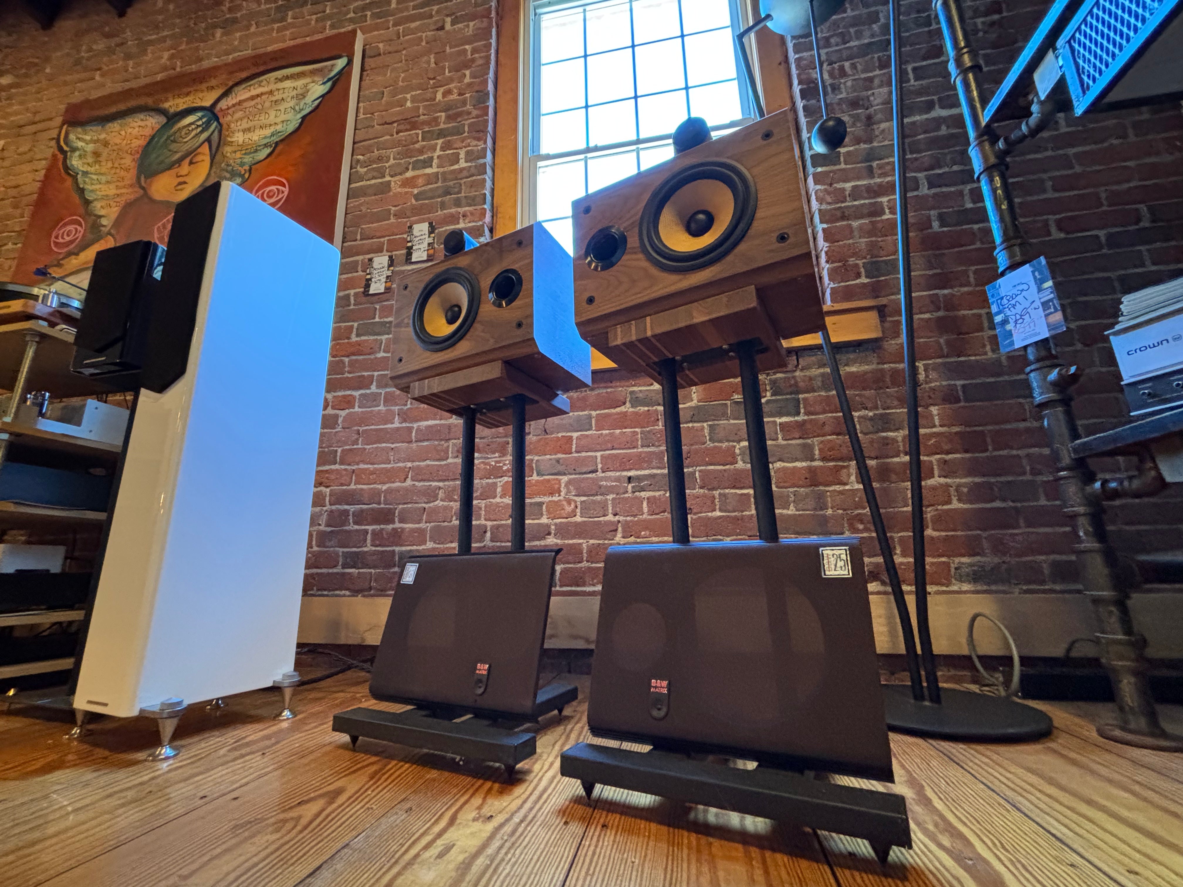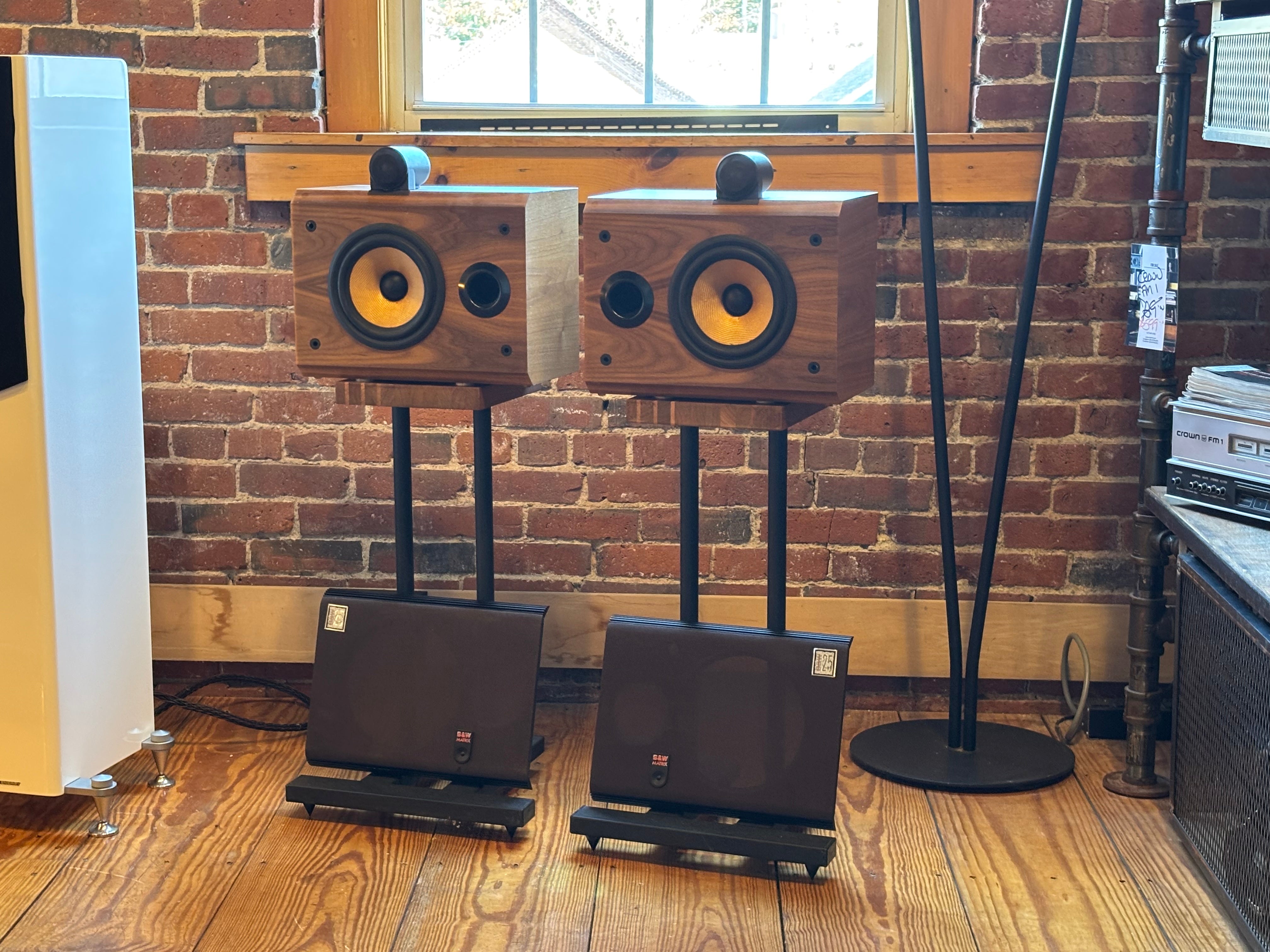 The compact B&W Matrix 805 Monitor(originally $1600/pair) employs many of the same design features found in the company's highly rated Matrix 801 system. Although the price was considerd high for a two-way mini-monitor, the 805 fit right into a growing high-end marketplace for such designs, one which emphasizes high quality in a small enclosure which will fit into most living-room environments without calling much attention to itself.