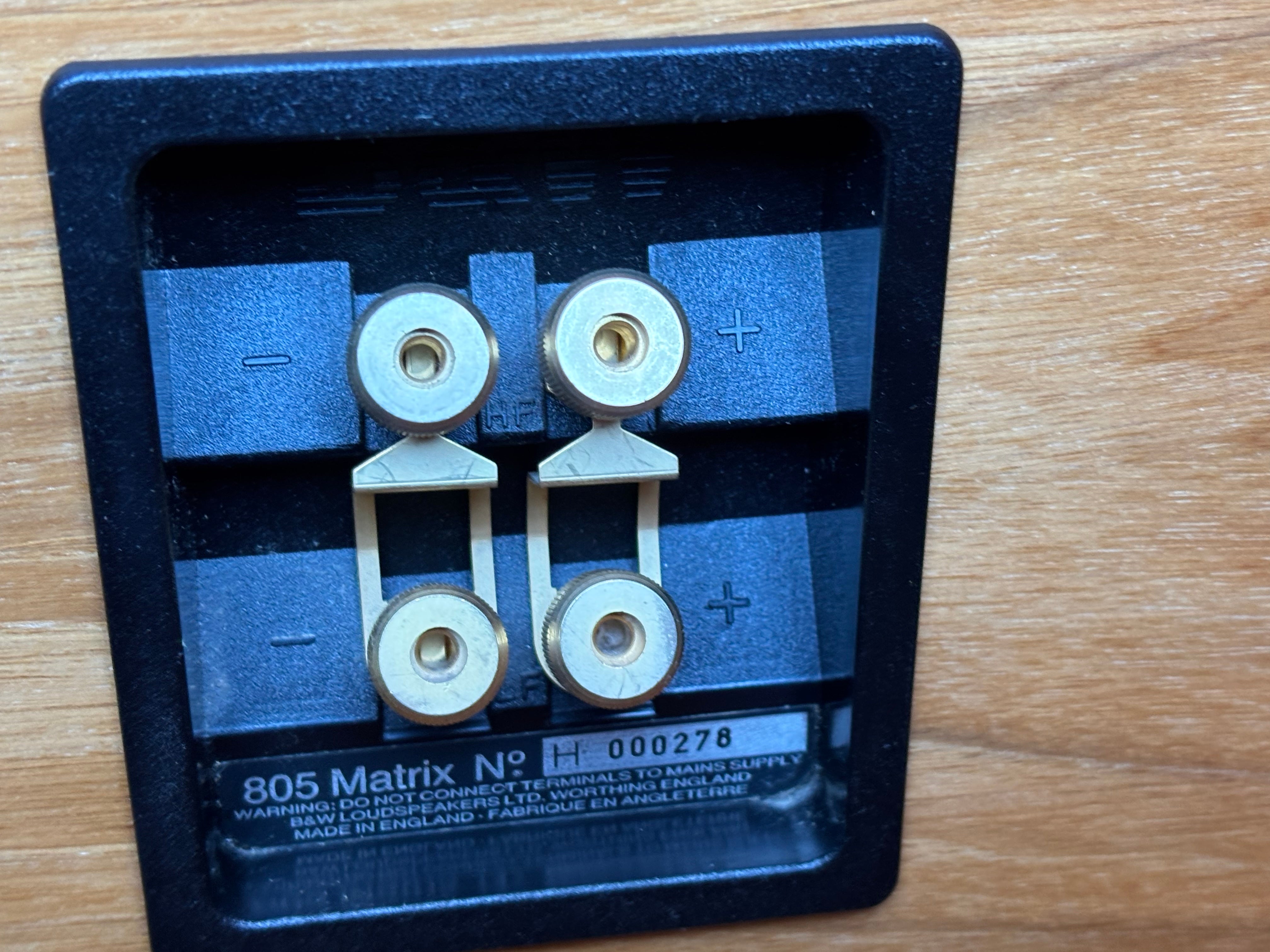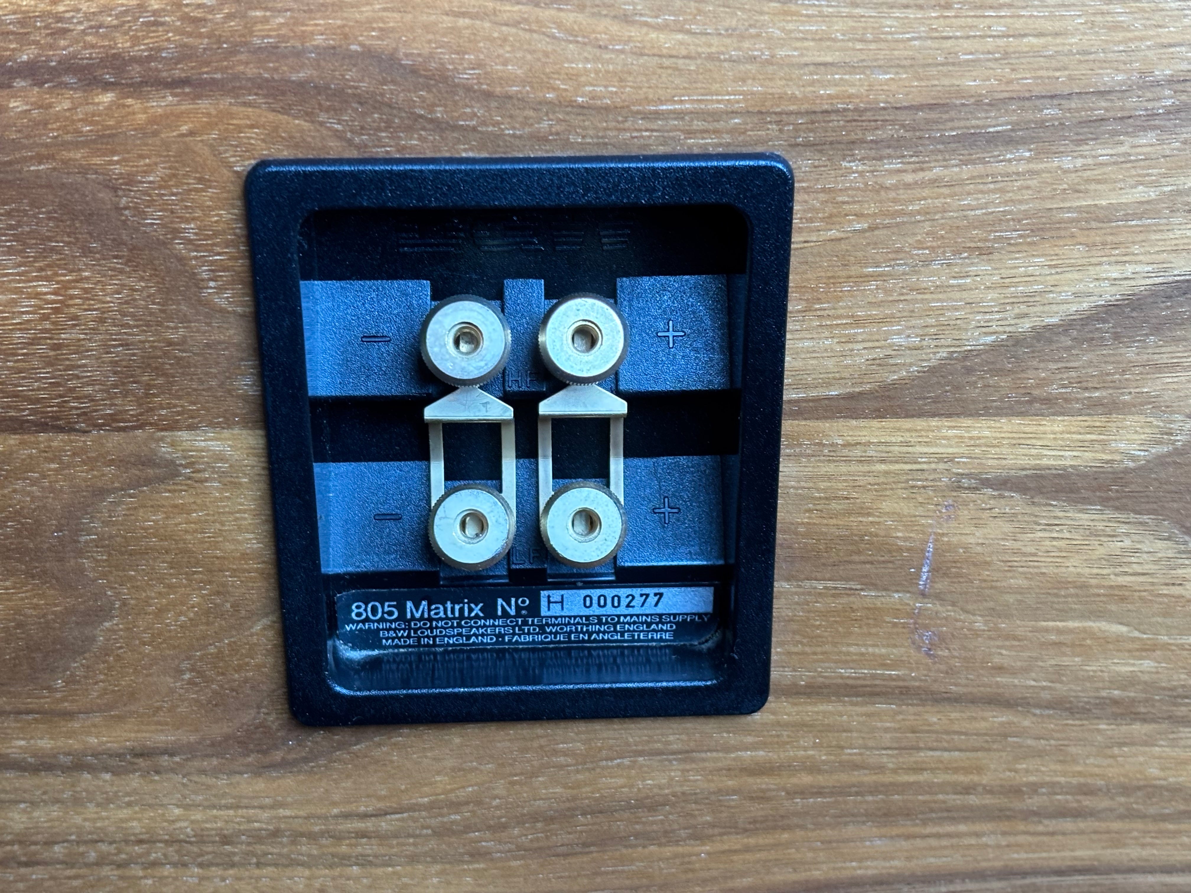 The 805's rear panel features heavy-duty gold-plated binding posts whose screws allow for bi-wiring and for very secure tightening on the spade lugs used with high-quality cables.