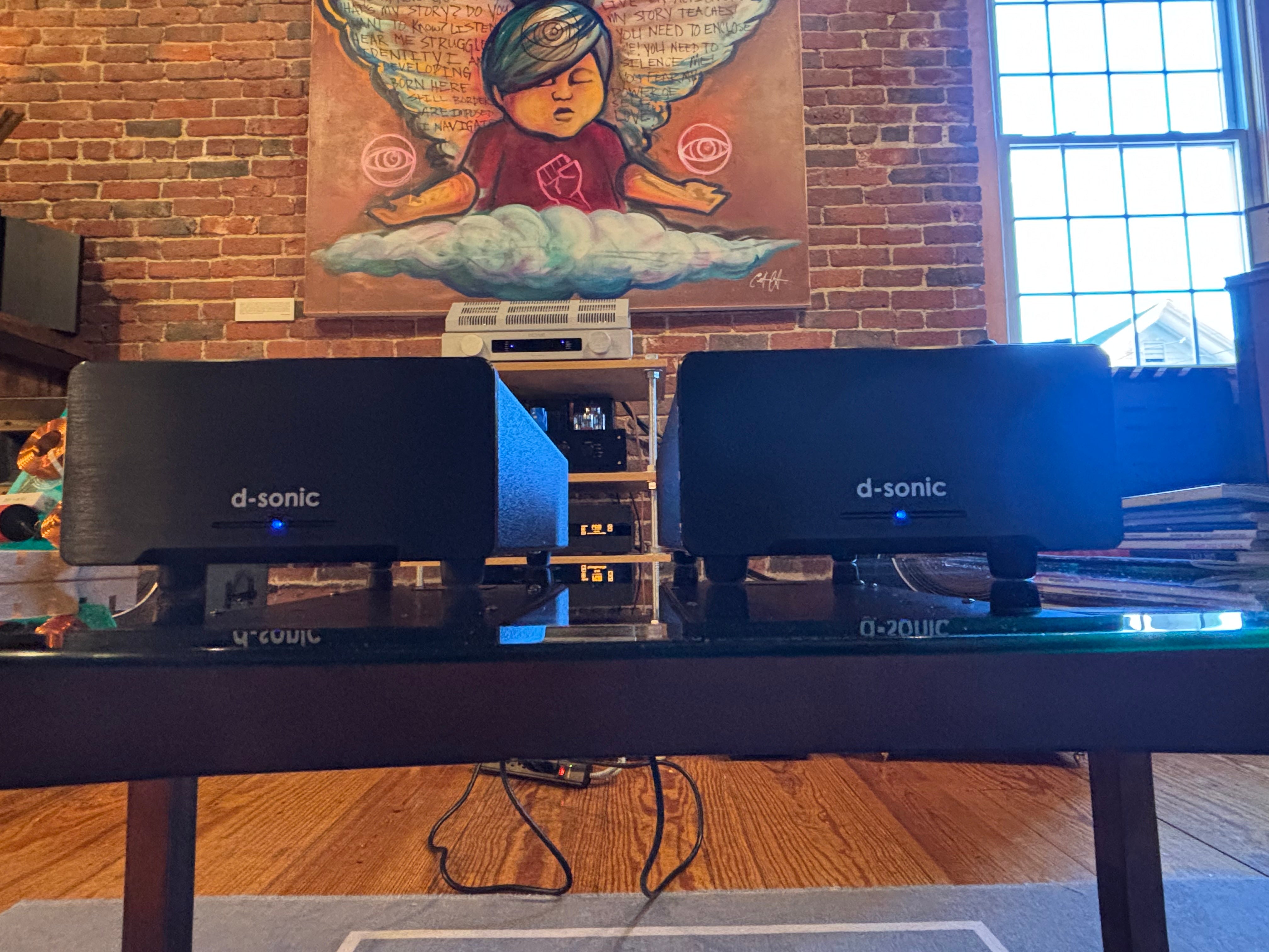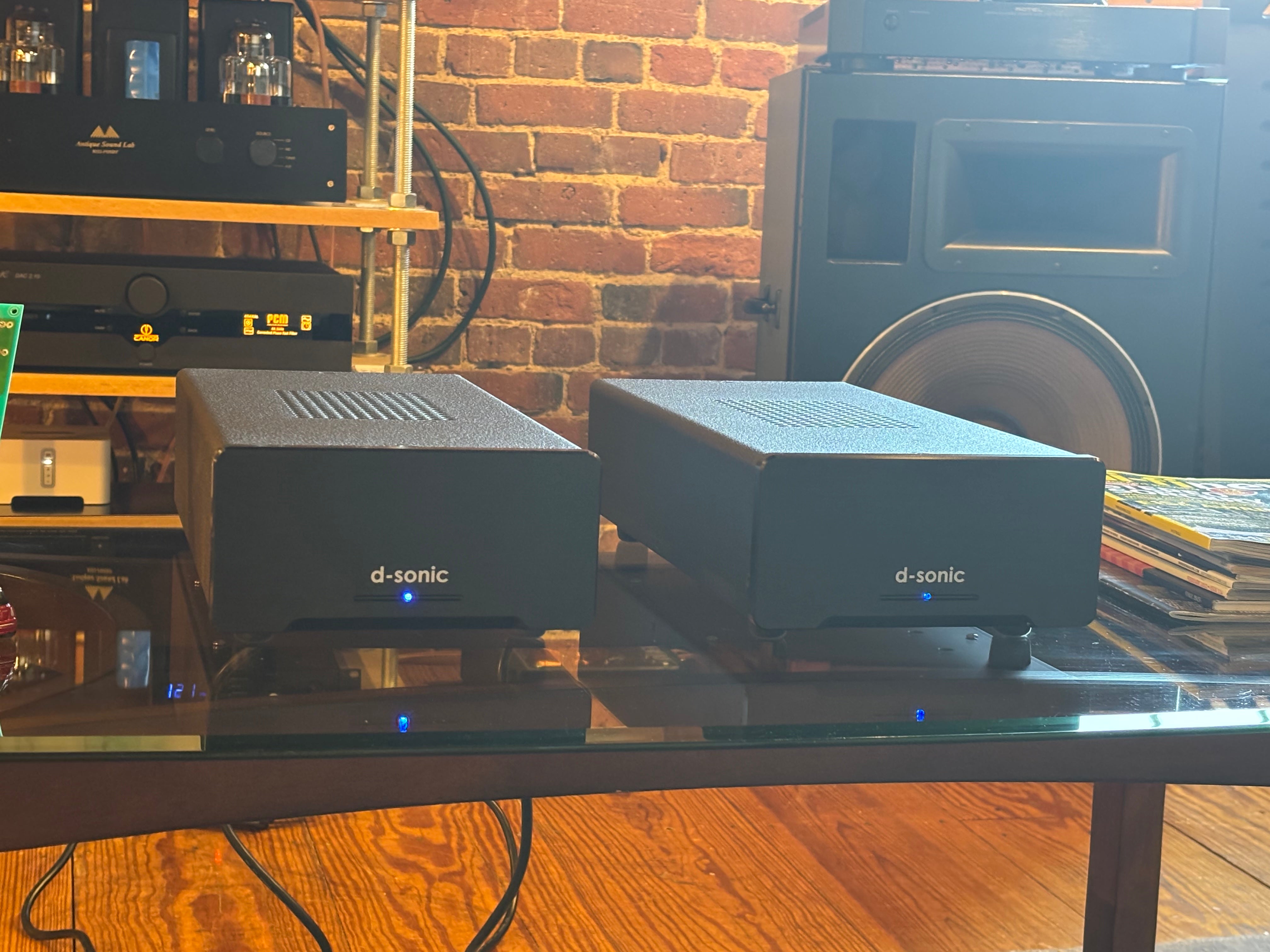 D-Sonic is an Internet company from Houston/Texas specializing in class D amplification. The product line covers the gamut from monoblocks to 7-channel amplifiers with a choice of different power ratings for each category, from 250wpc to as high as 1500 on some. A number are based on popular B&O ICEpower but the M2-1500M under review use a different core. This is currently D-Sonic’s top monoblock and despite the modest price the performance aspirations are extremely high. The diminutive little flagship promises enough horsepower to dance with the most difficult partners and was about to meet Apogee’s gnarly full range ribbons. Would it show enough sonic pedigree to make real music? We say hell yeah!