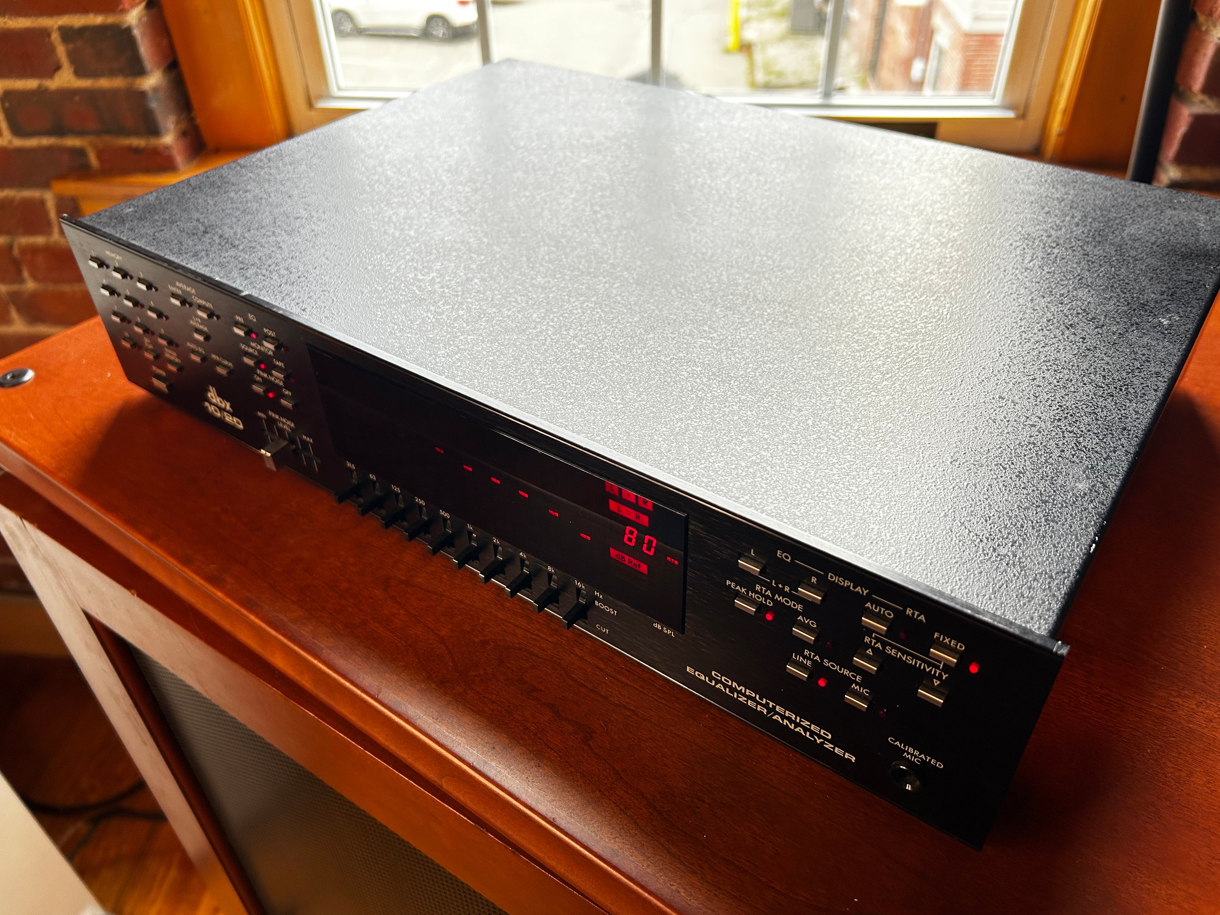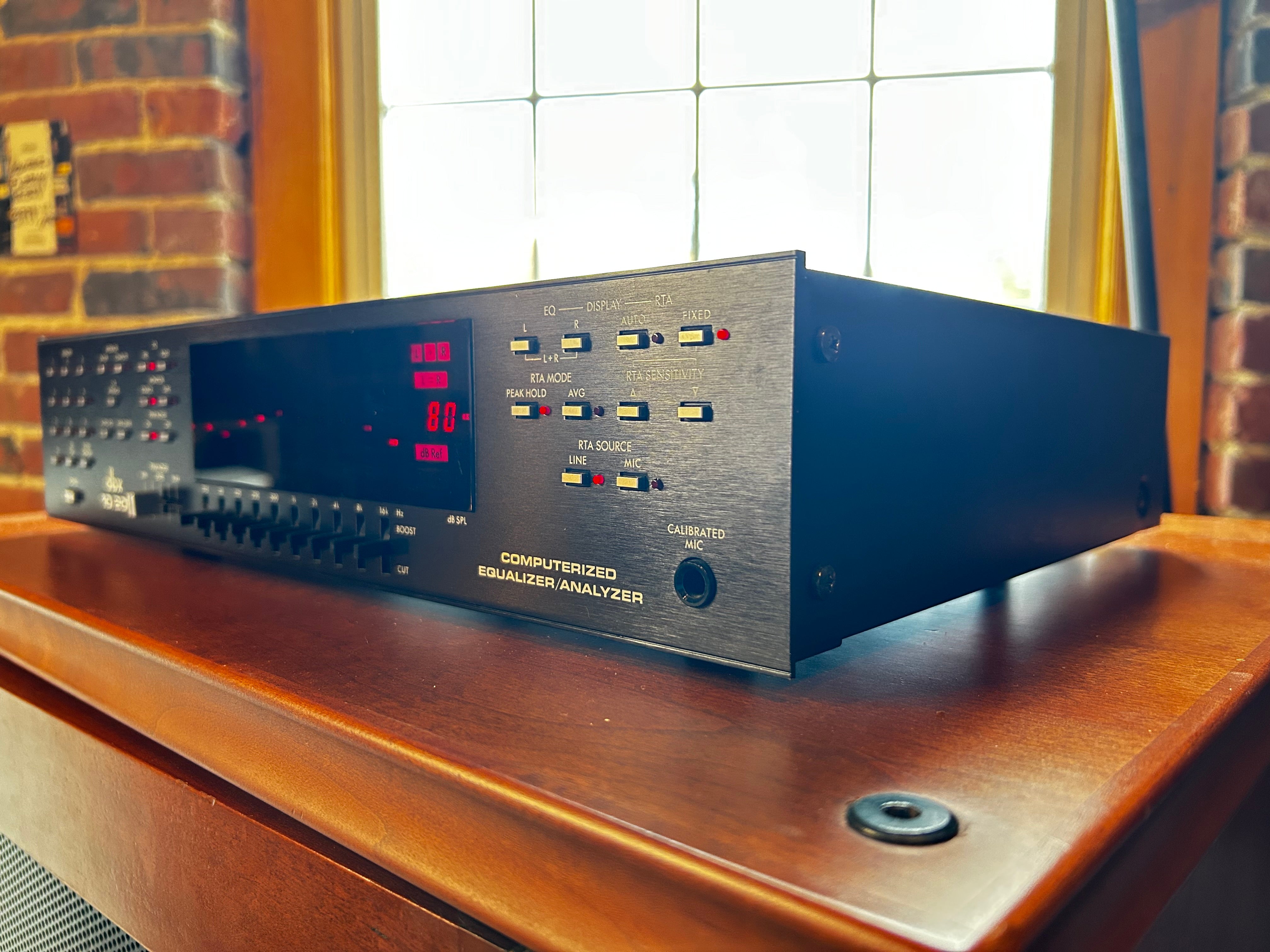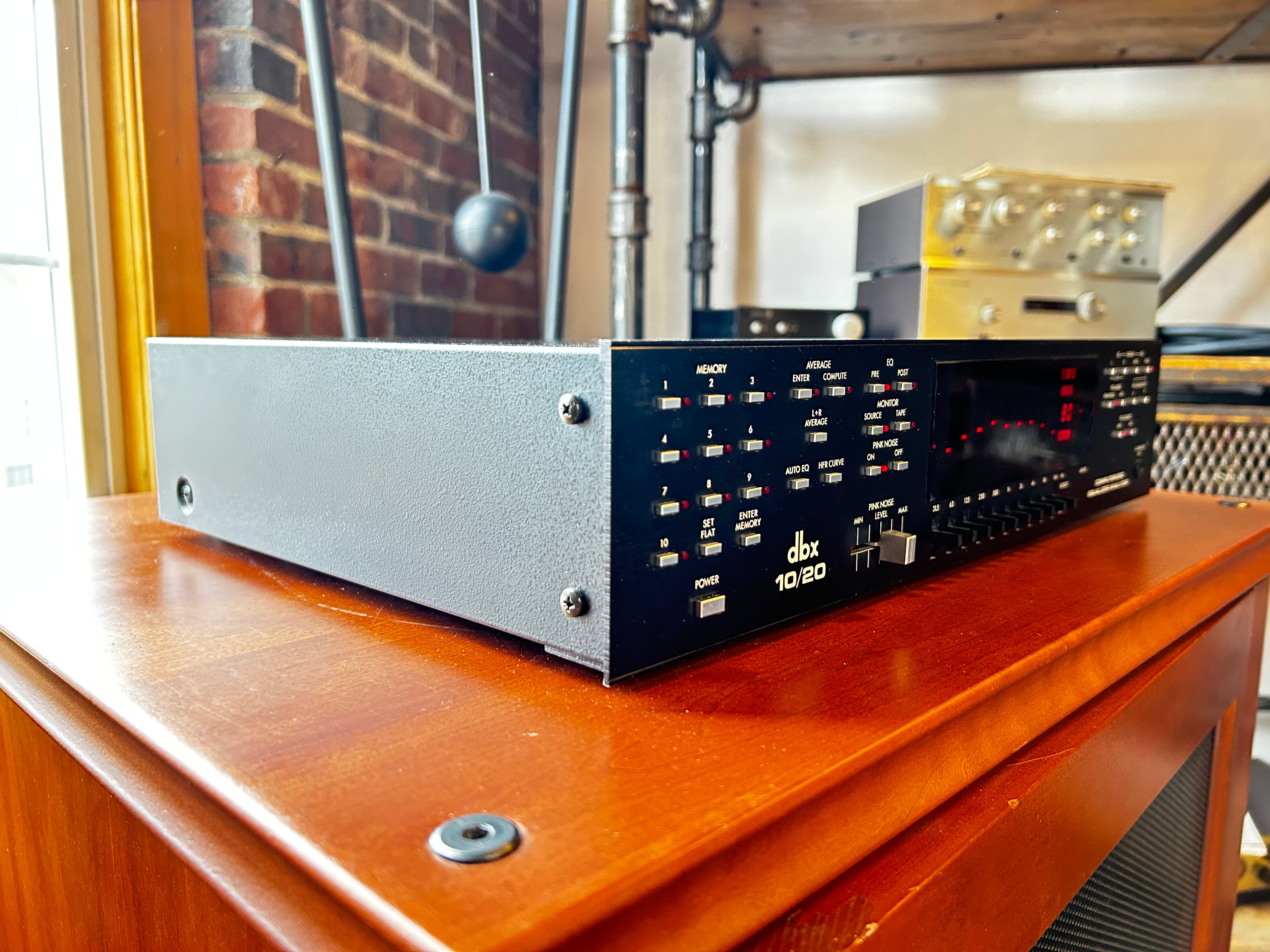 The dbx 10/20 was a leap forward in graphic EQ technology at the time.  Considered a "Super EQ" by many even today, the 10/20 is a computerized 10-band graphic equalizer from the 1980s that functions as a real-time spectrum analyzer, pink-noise generator, and sound-pressure-level (SPL) meter, providing automated room correction by analyzing sound and adjusting frequency levels for an optimal frequency response. It features precision switches for manual adjustments, LED readouts, and can equalize speakers individually or as a stereo pair.