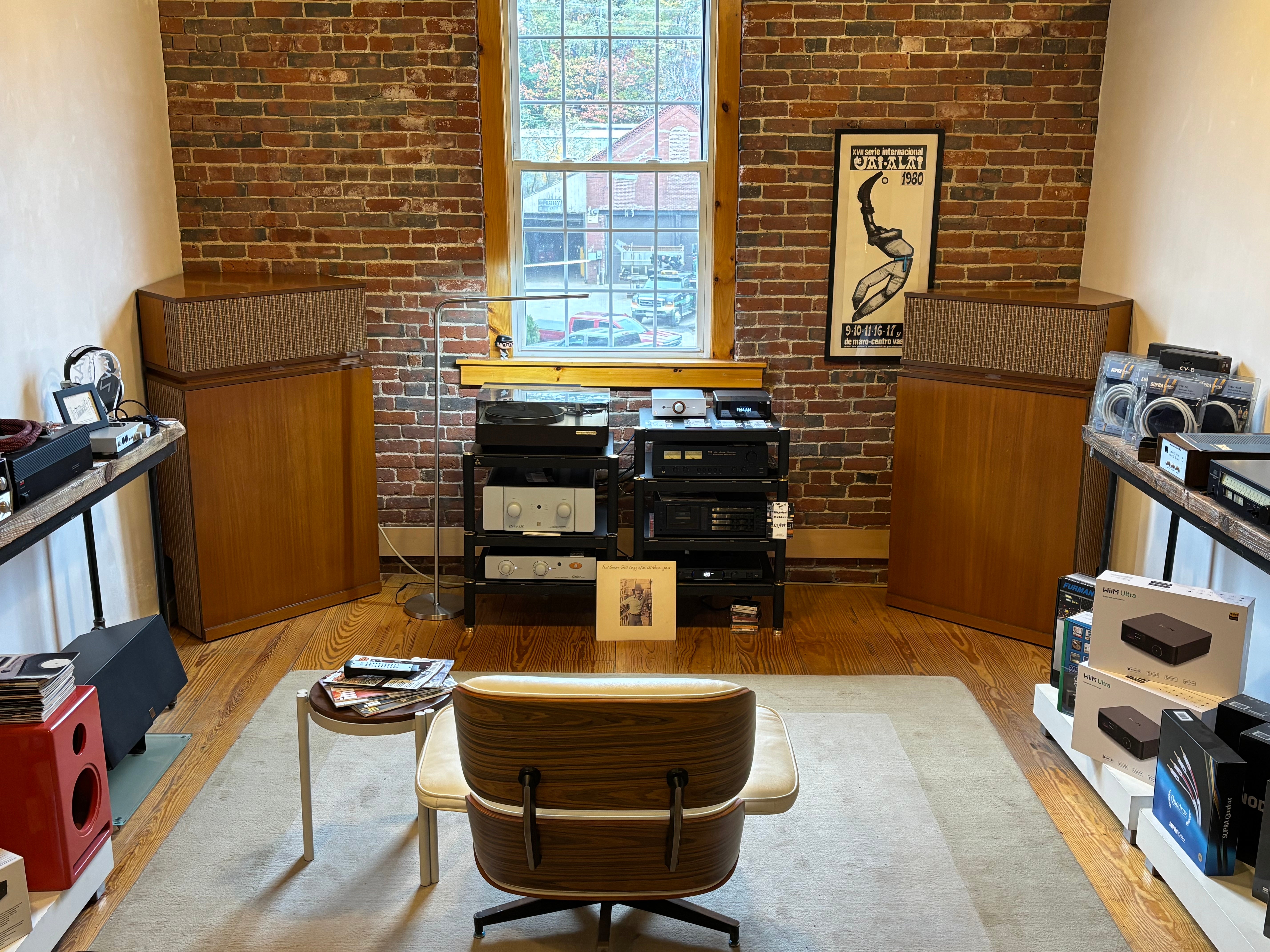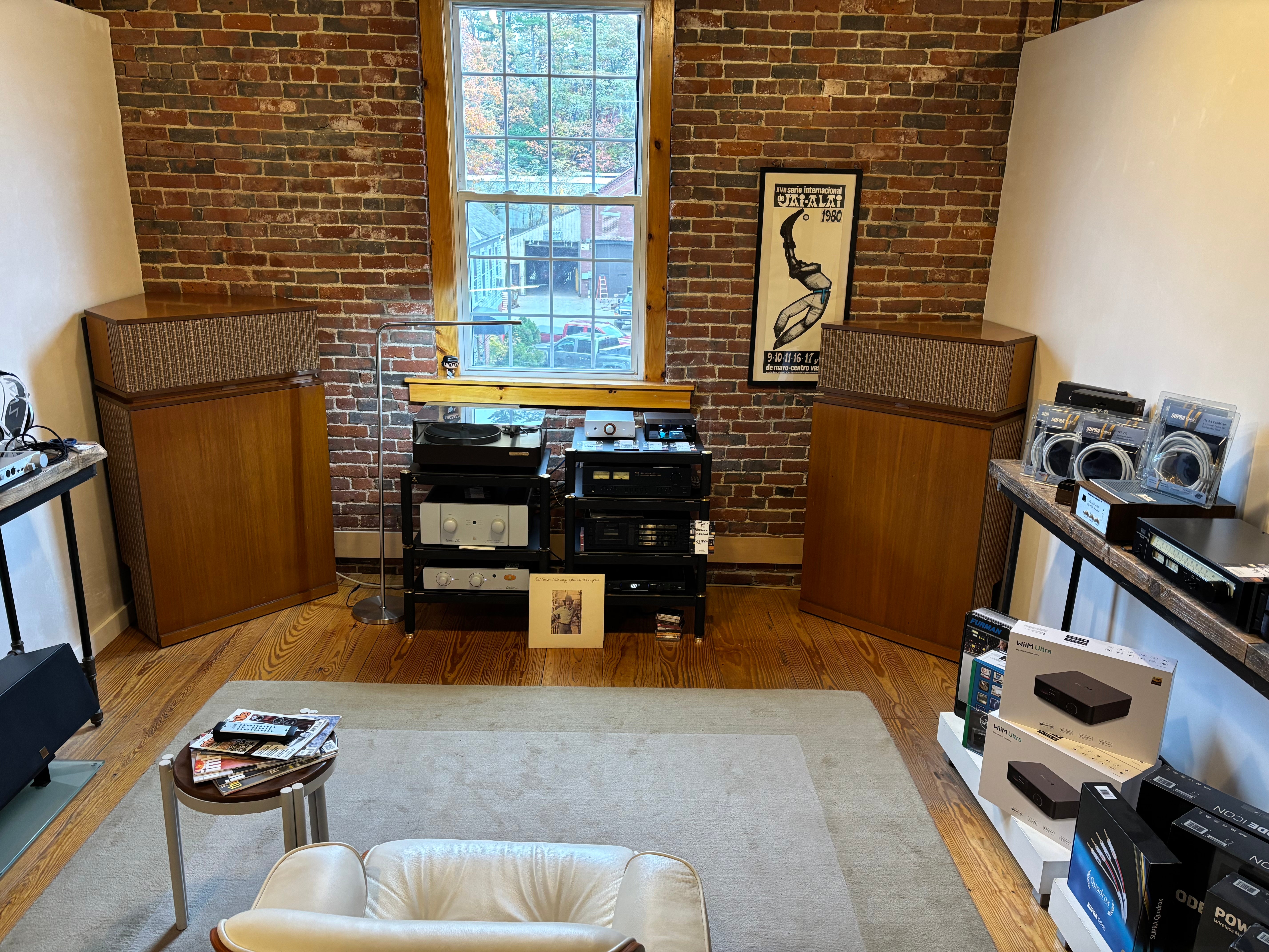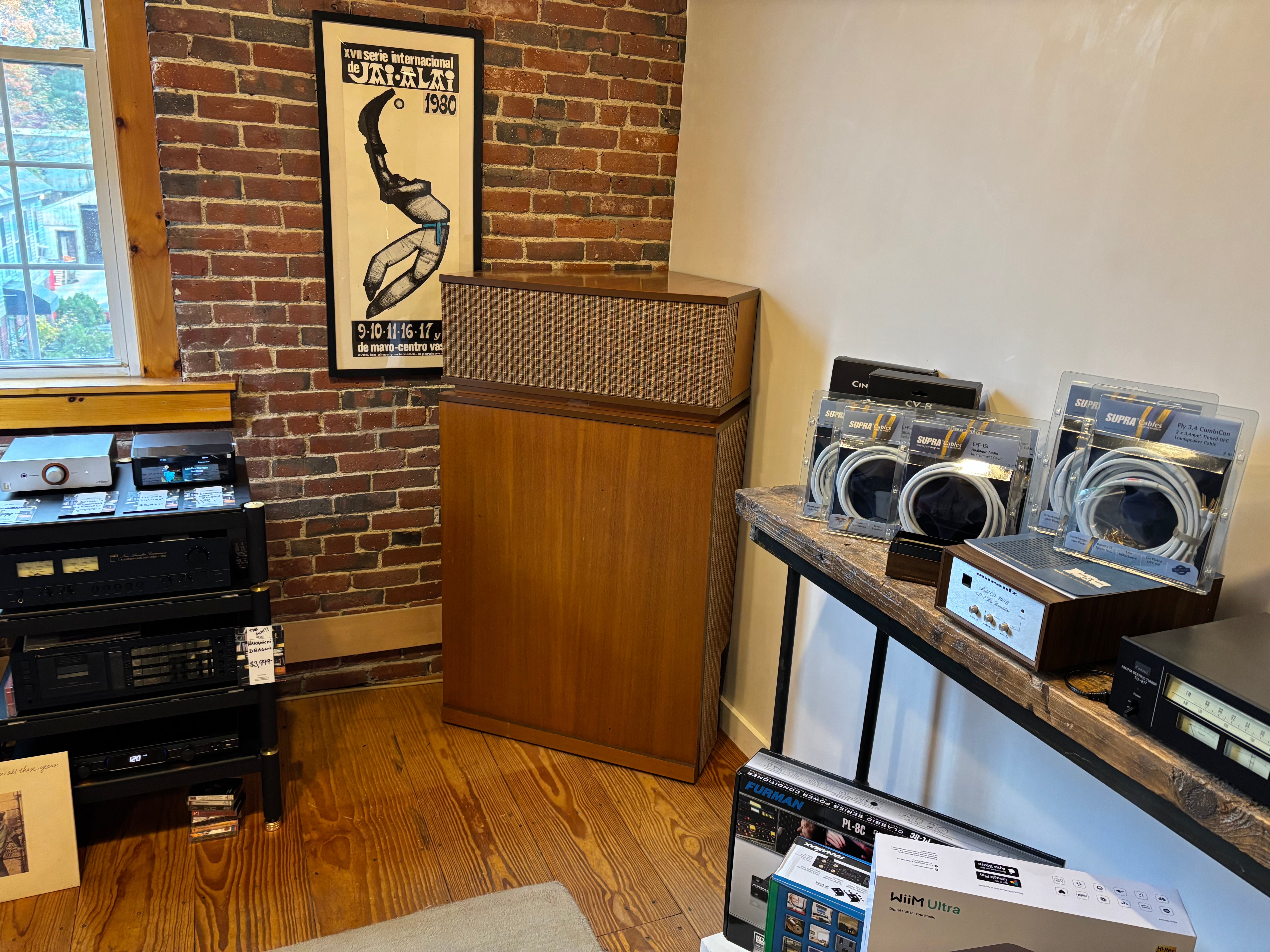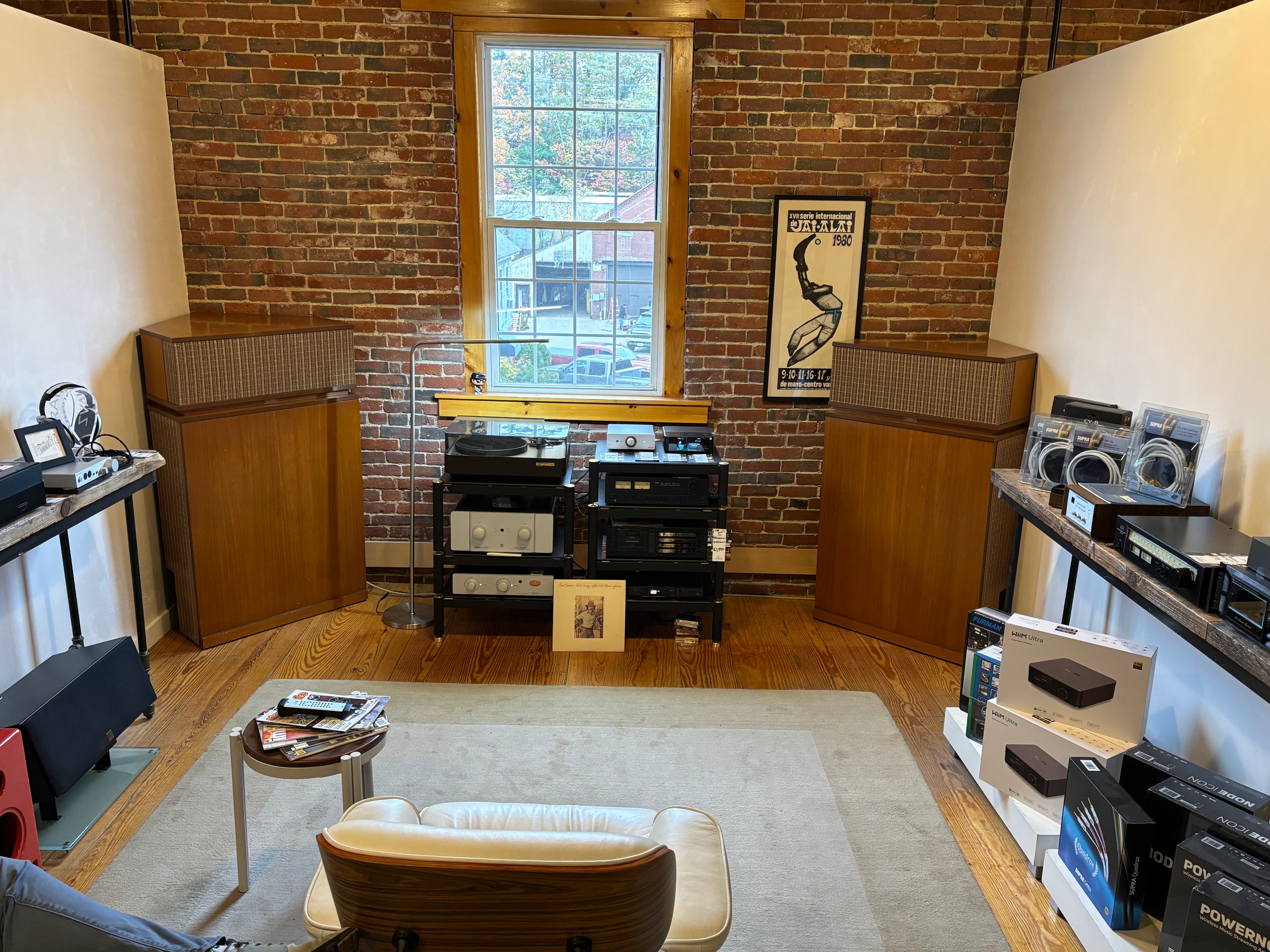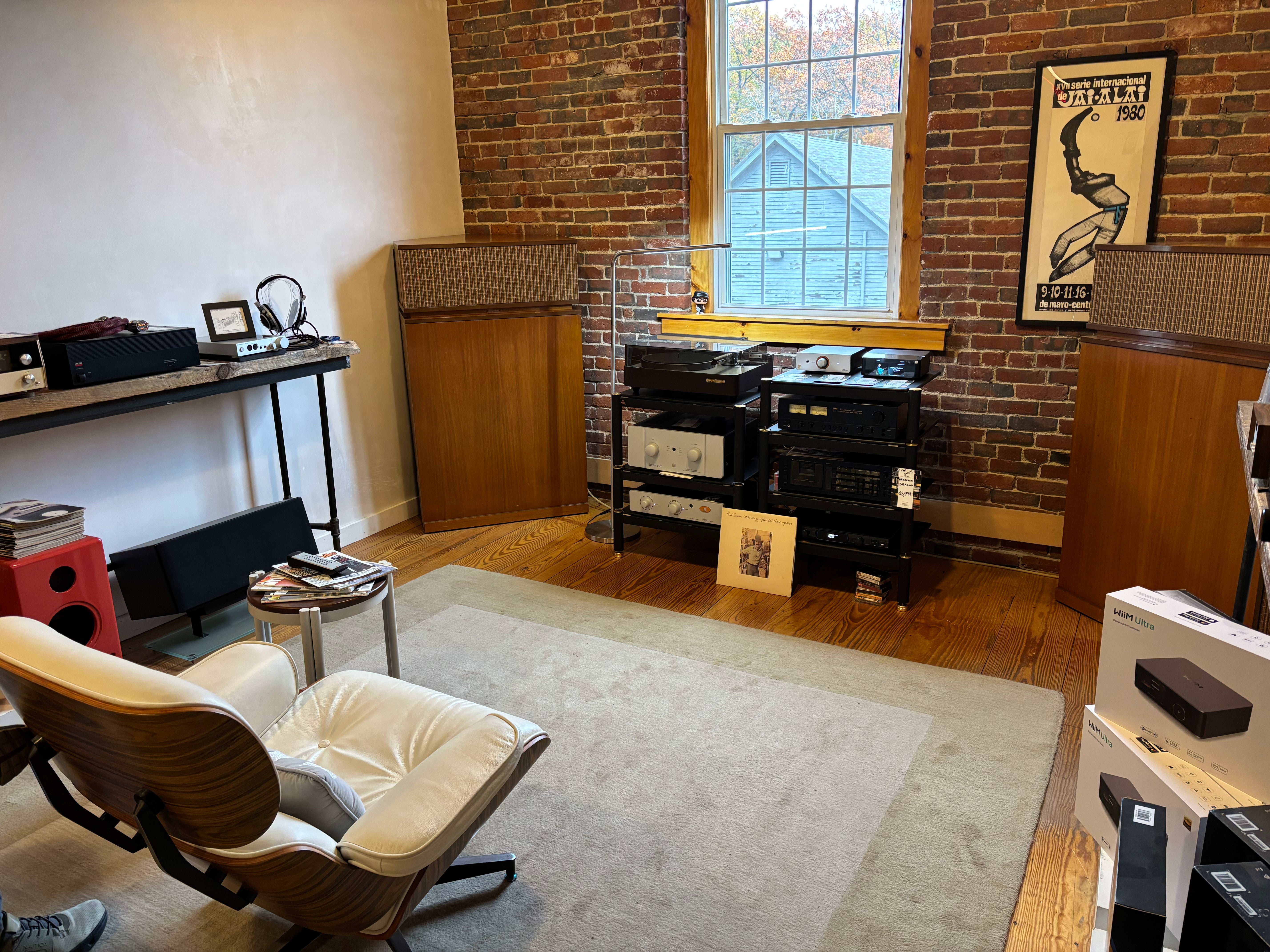 A fabulous set capable of earth shaking performance - this particular system was powered by a pair of Threshold S1000 monos; why, we don't exactly know but can guess that the previous owner may have, at times, needed to light up an aircraft hangar. Performance is exceptional. Just what one would expect from a speaker design that has remained largely unchanged for an entire human lifetime. Have to say this, they are exceptional and play better that MANY of the K-Horns we have experienced. Really special!