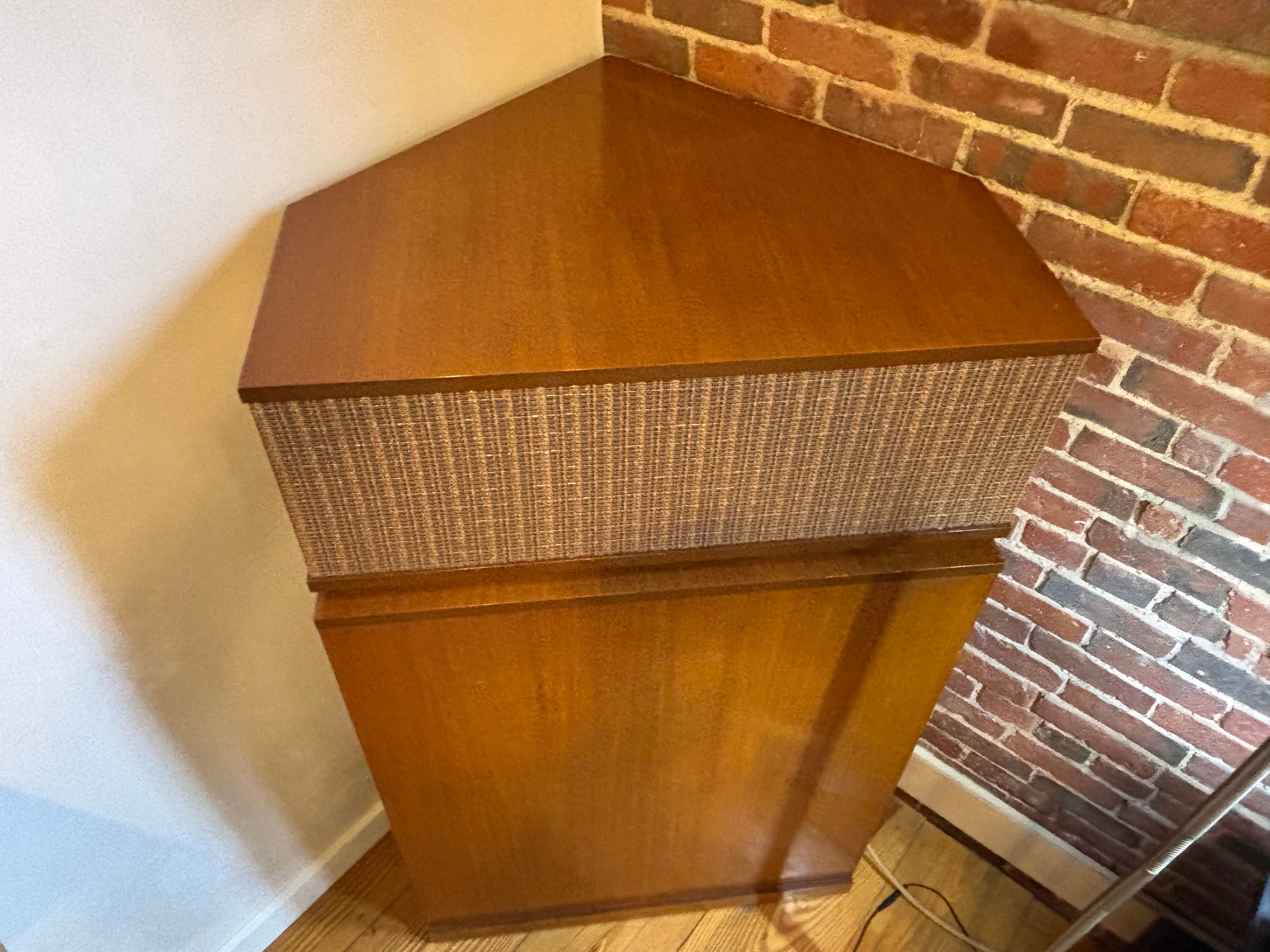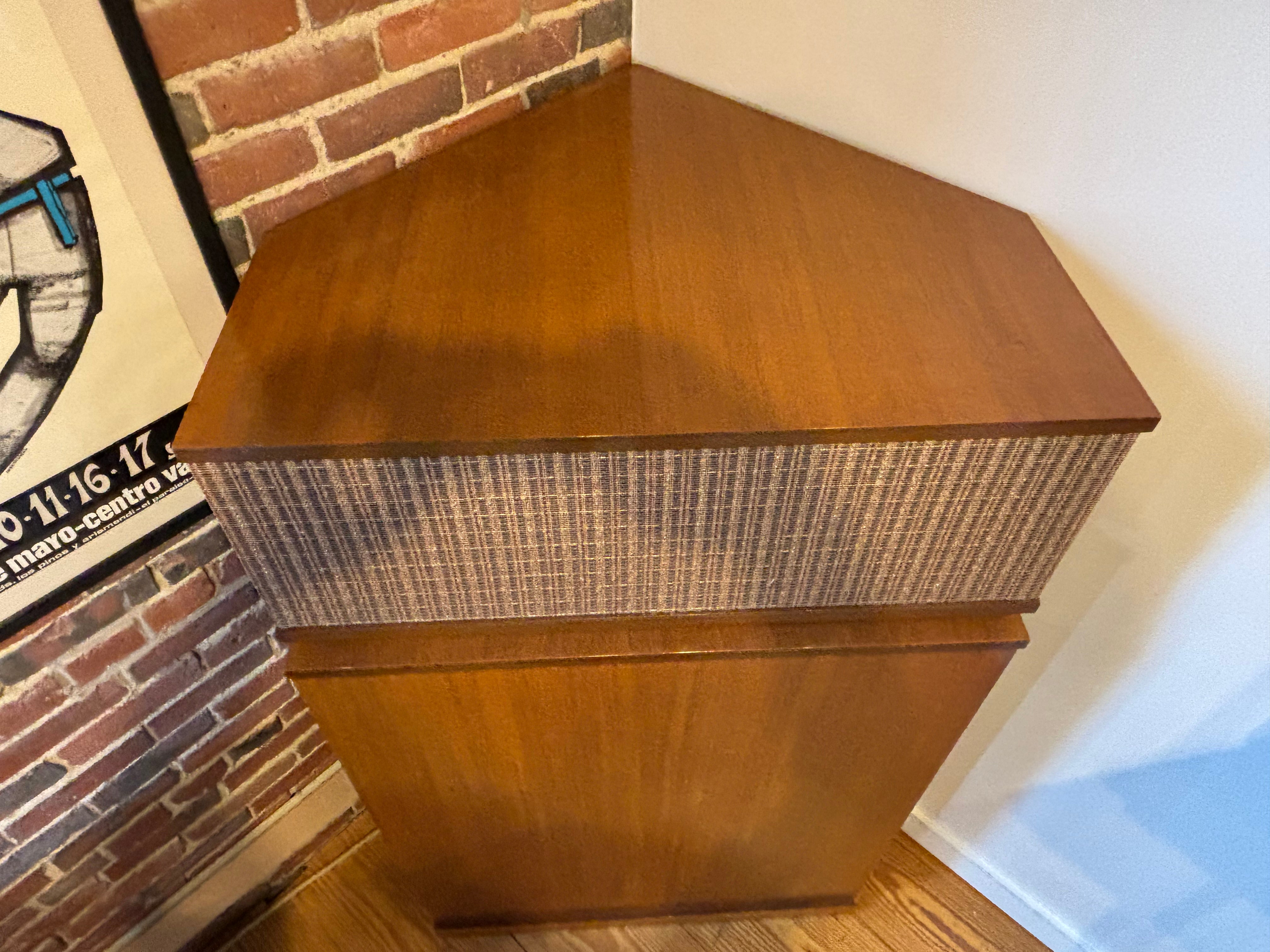 In the Fall of 1960, this pair of K-Horns were born. This set were purchased by a passionate audiophile, and remained with that same family for their entire life. The "Custom Maple" wood veneered finish and fabric grill cloth were indicative of the era. This set is spectacular visually, and even better sonically with their upgraded B&K Enterprises ABS Mid-Horns, upgraded wiring & speaker line connections.