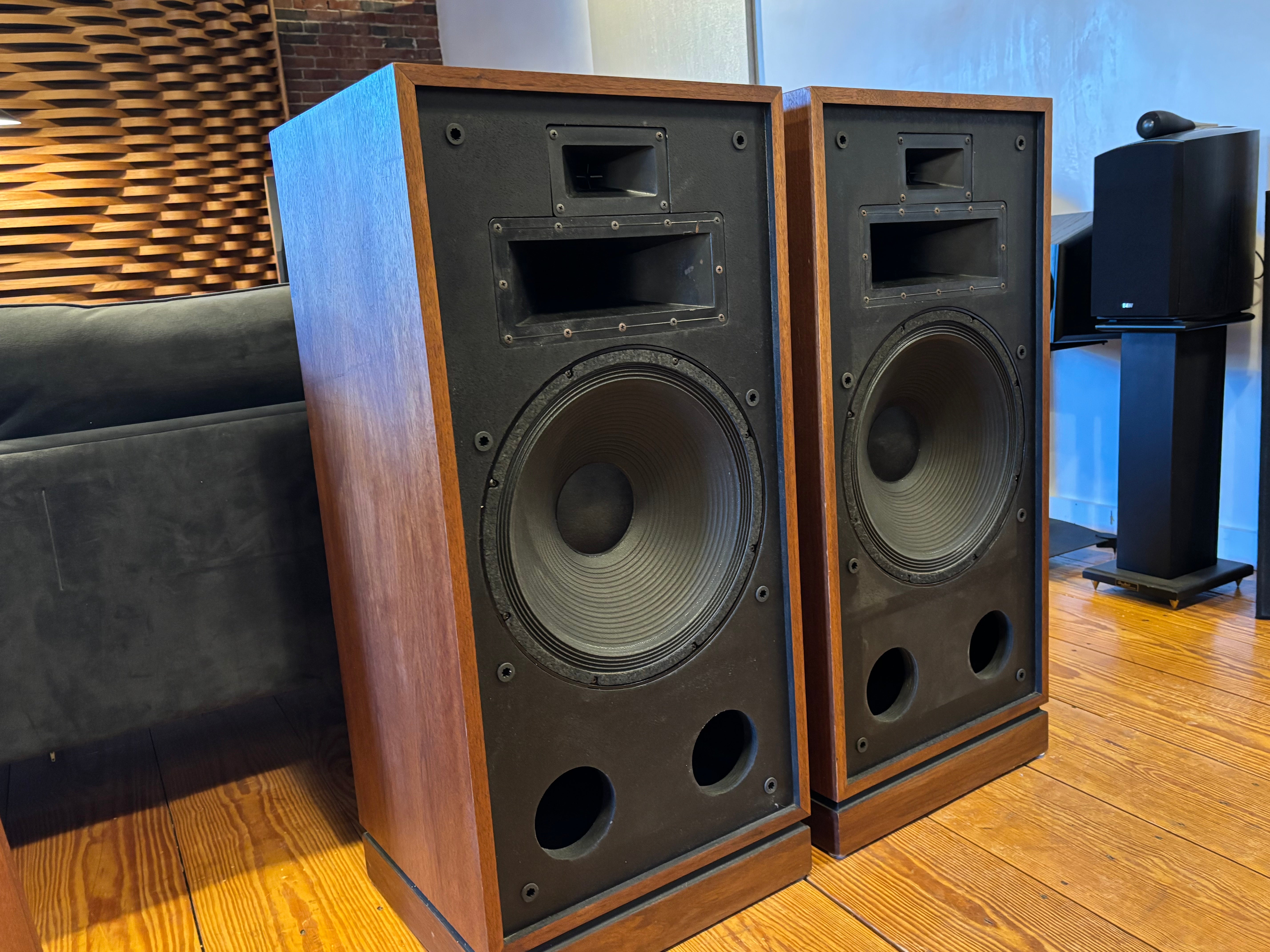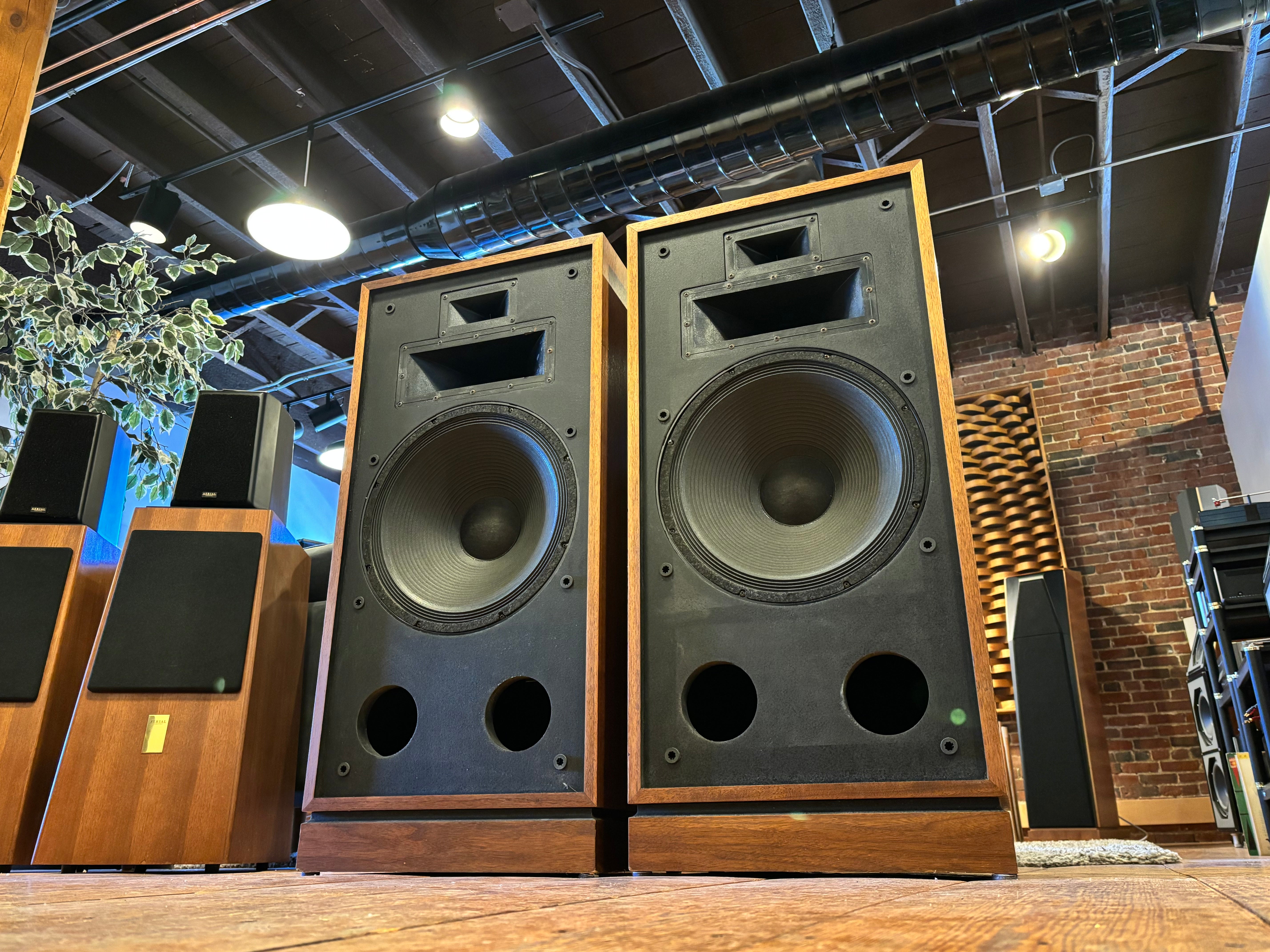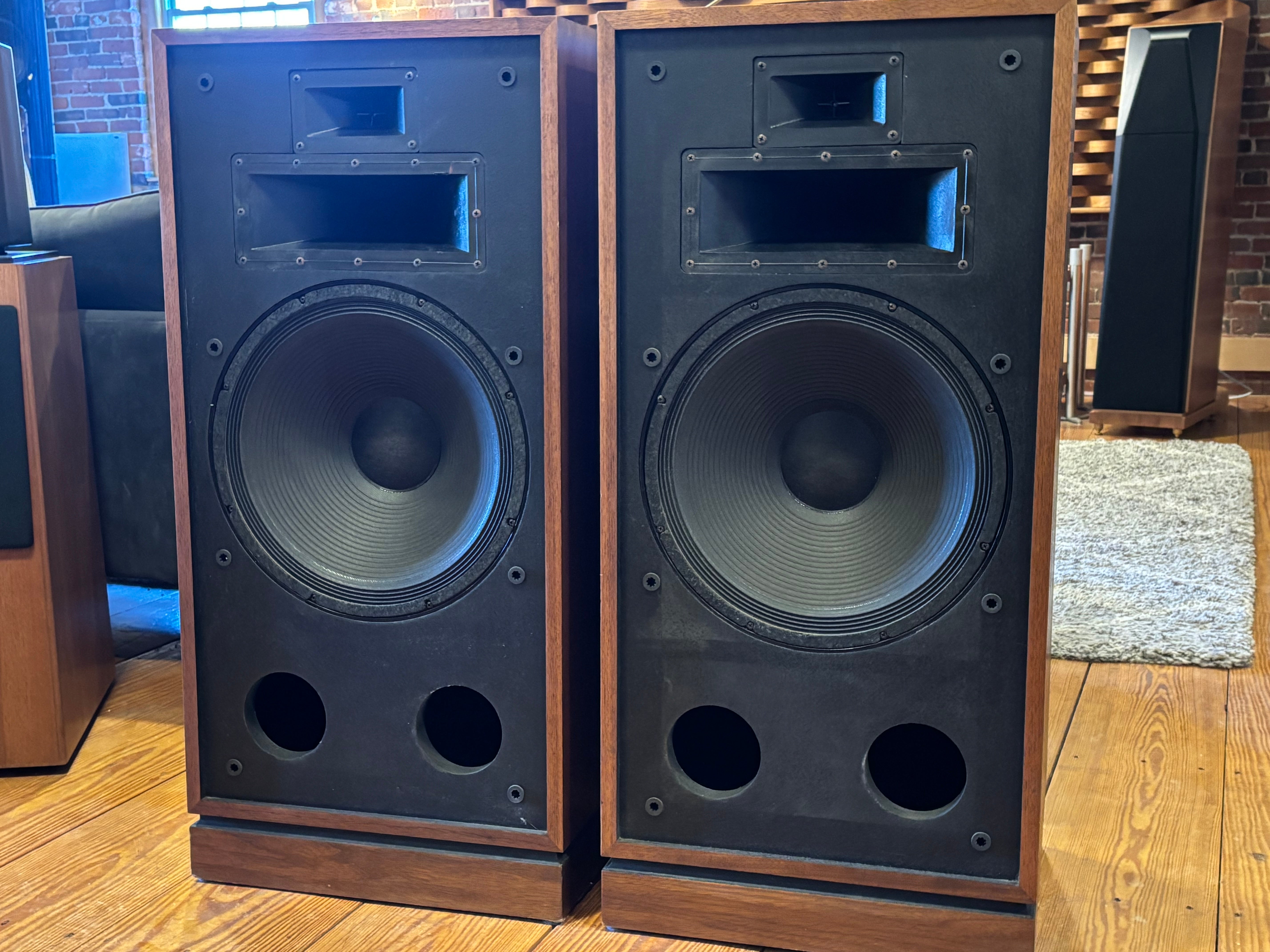 The Chorus loudspeaker delivers an exceptionally "big" sound in any room. The speakers excel at complex musical compositions, blues, jazz, rock...Well, really any musical genre you can think of. The efficient high-frequency and midrange Tractrix horn drivers, as well as the reliable 15" low-frequency woofer work together to create a very smooth low distortion, dynamic sound. It's rare that a Series I Chorus system arrives at our shop in this AMAZING overall condition. They more likely than not found their way to dorm parties and or ski mountain events totally capable of rocking the house or slopes when called on to do so but, no, not these. This set has been pampered and babied their entire life and resided right here in Andover since purchased new in 1988.