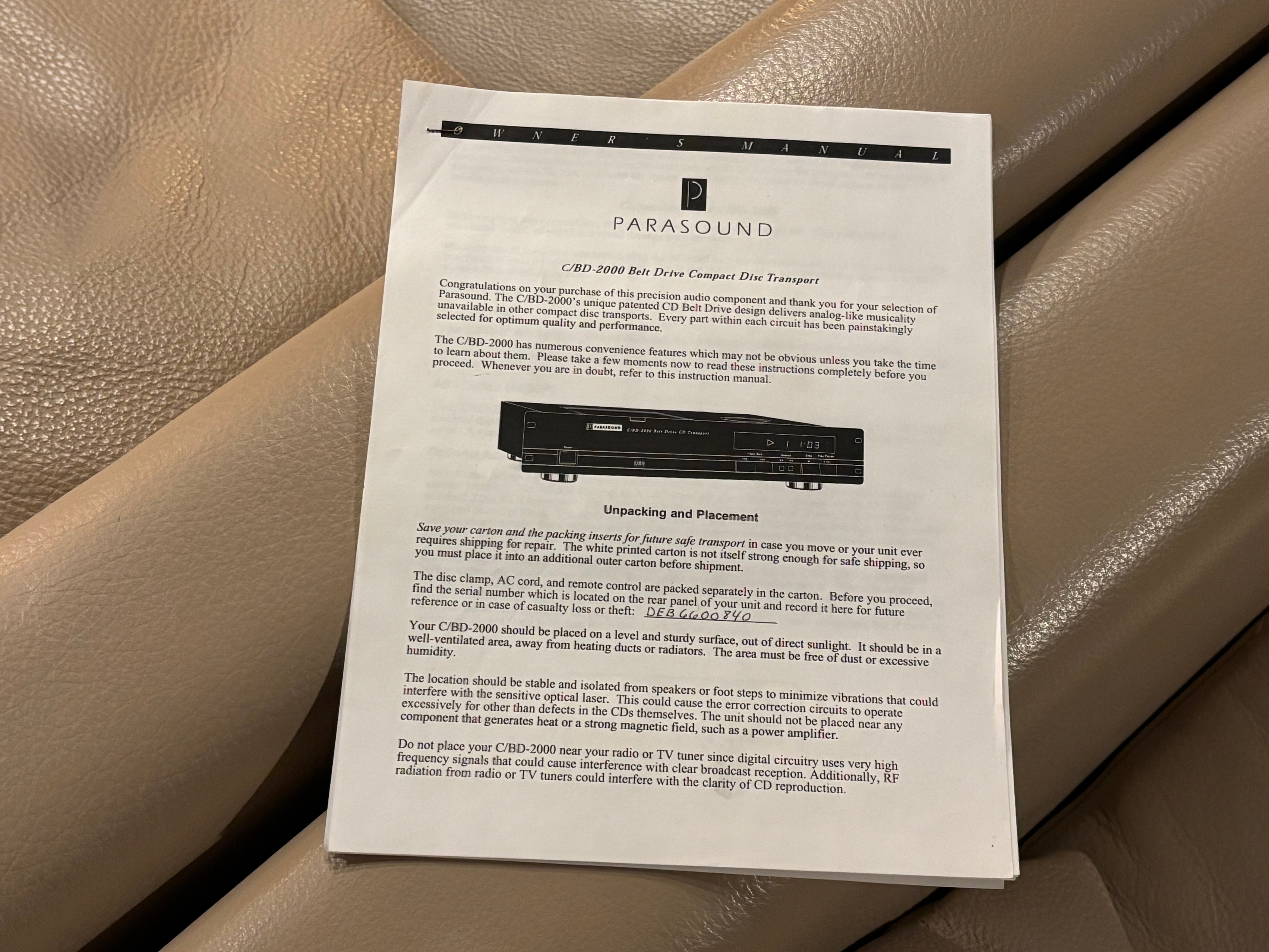 Parasound C/BD-2000 HiEnd CD Transport: $599 plus tax and shipping when applicable