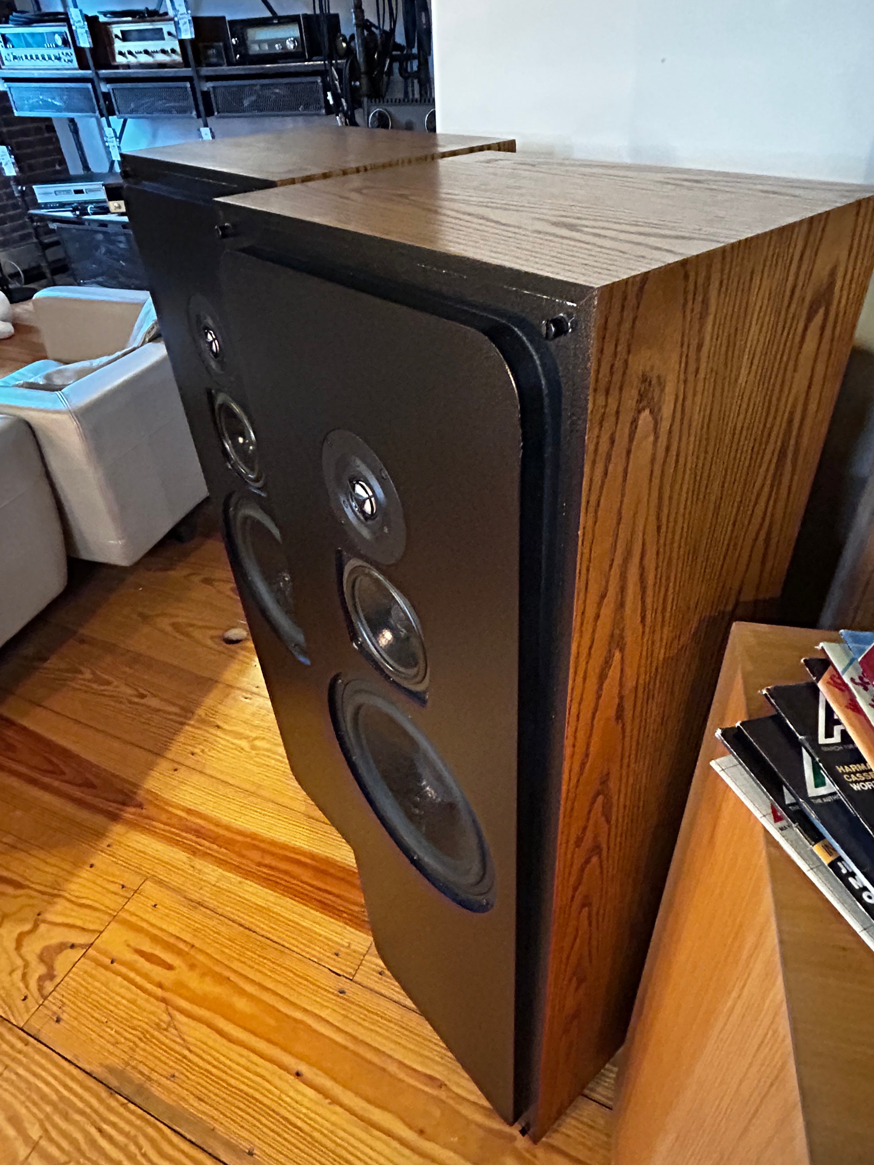 Snell Acoustics made truly great speakers right down the road from us in Haverhill, Massachusetts. Snell was founded in 1976 by Peter Snell to develop a speaker that "disappeared" sonically; providing the listener with uncolored and pure music. Snell's approach combined excellent quality drivers sourced from Europe, and hand-built, hand-matched crossovers to ensure those drivers were performing at Peter's highest possible standards. Peter Snell personally matched each pair of speakers to a "Reference" pair in his listening room, at a time before computer simulation and analysis!