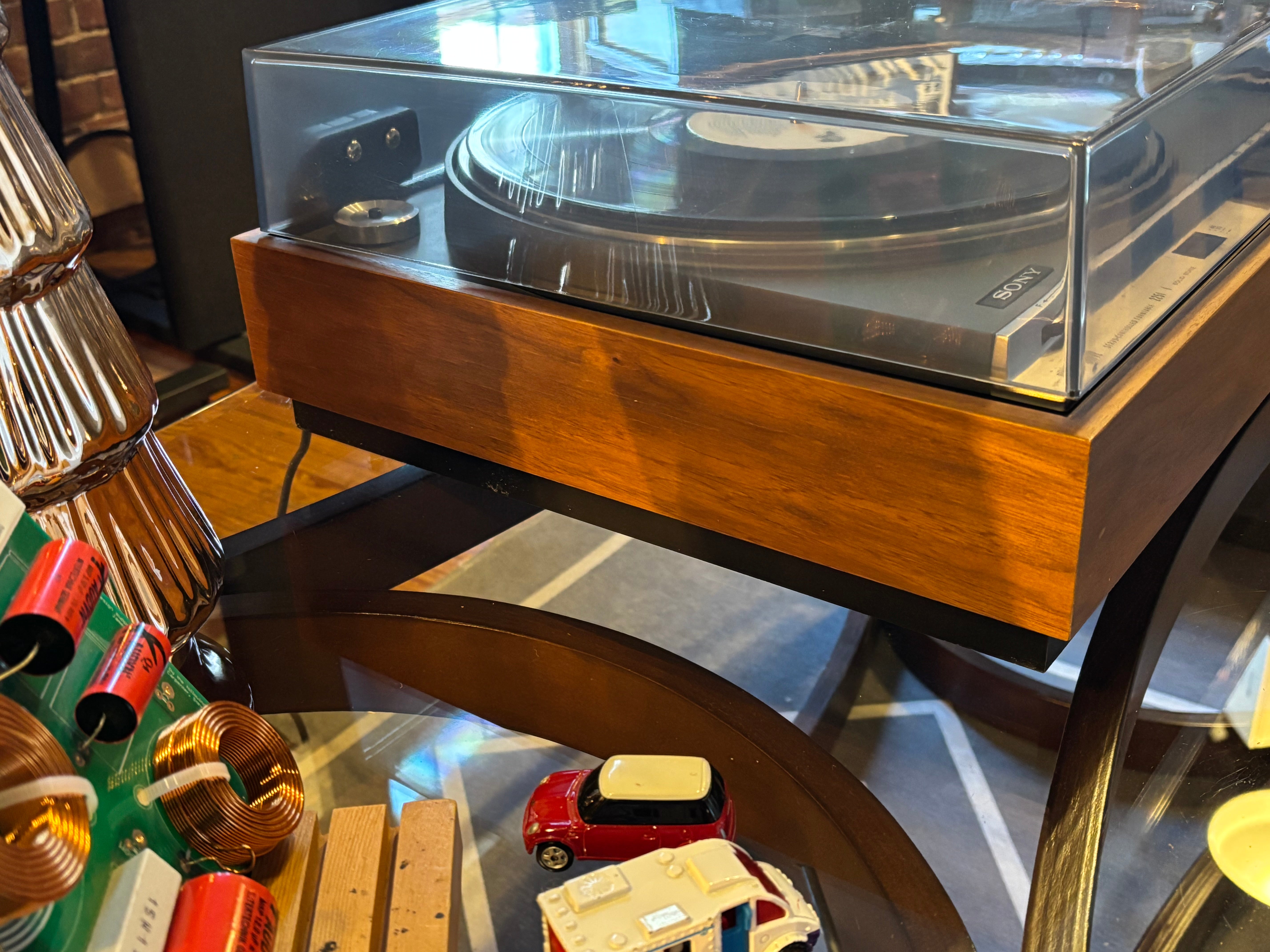 Built to go after similar Technics decks of the same era, the Sony 2251 is much more rare and an equally (if not better) performer. This 2251 comes complete with the Sony PUA-113 Universal Static Balance tonearm in excellent condition as well as a mounted Grado XC+ MM Cart,... a classic high-end plug and play situation. The PUA is mounted on its own armband too so if you'd like to swap out this arm, cant imagine why you'd ever want to, know that you can. Can talso use the RCA connectors of your choice, a nice feature. The real walnut plinth is in flawless condition and overall, the table is exceptional and comes complete with its original box/packaging/OM & all the as-new accompaniments. Even the factory headshell & 45 adapter. Cant imagine there's another one like this; stunning visually and in its performance.