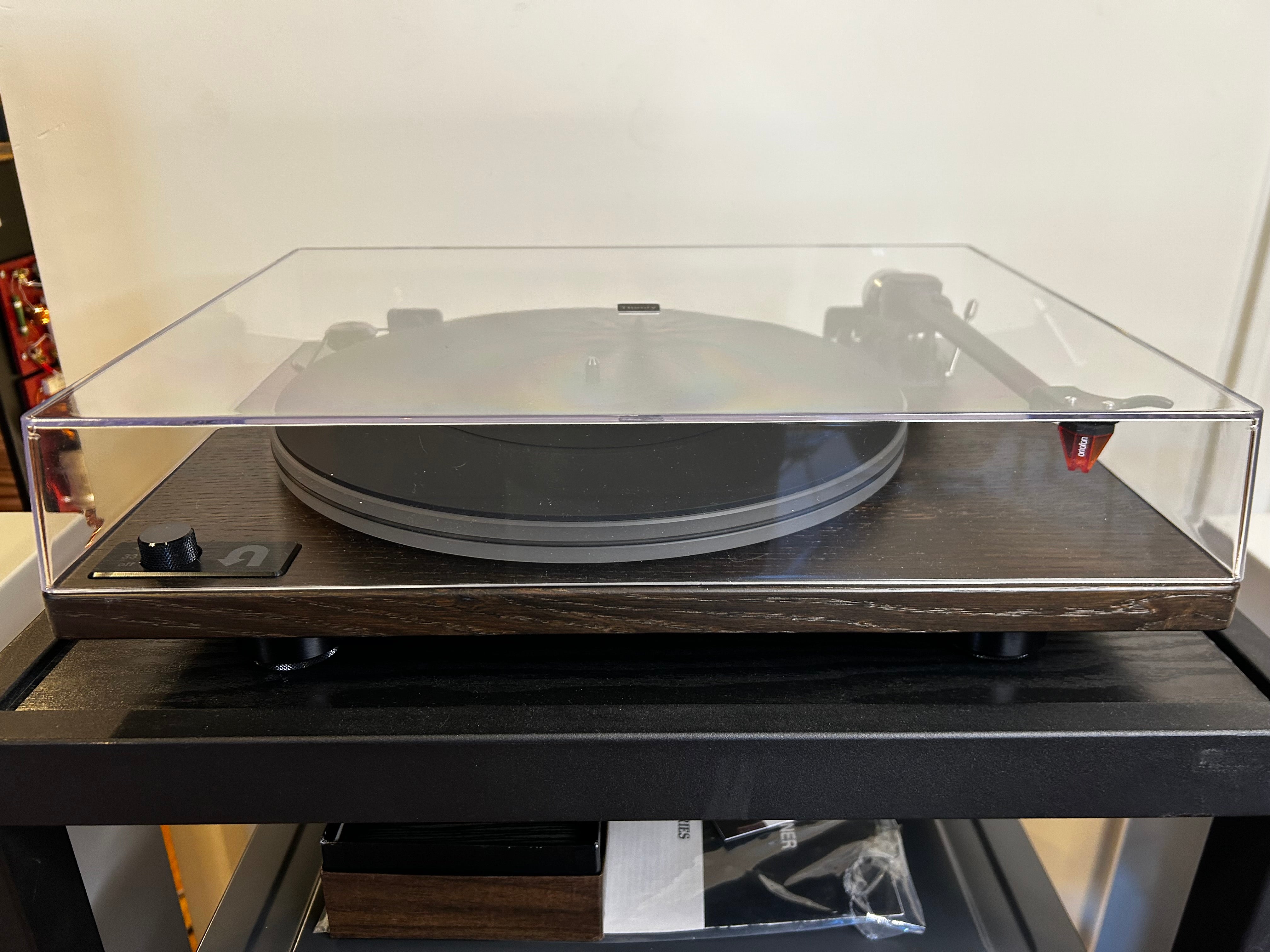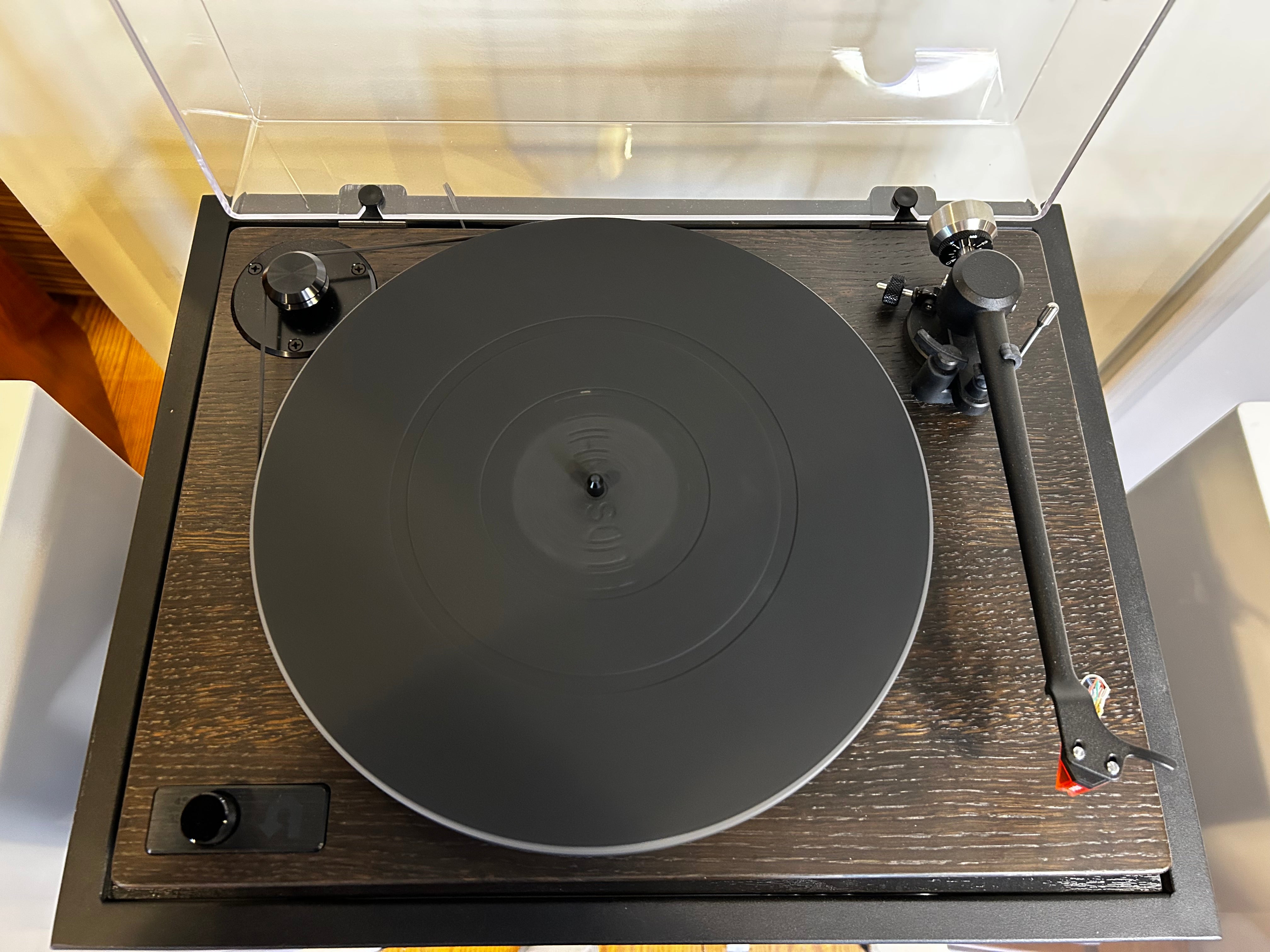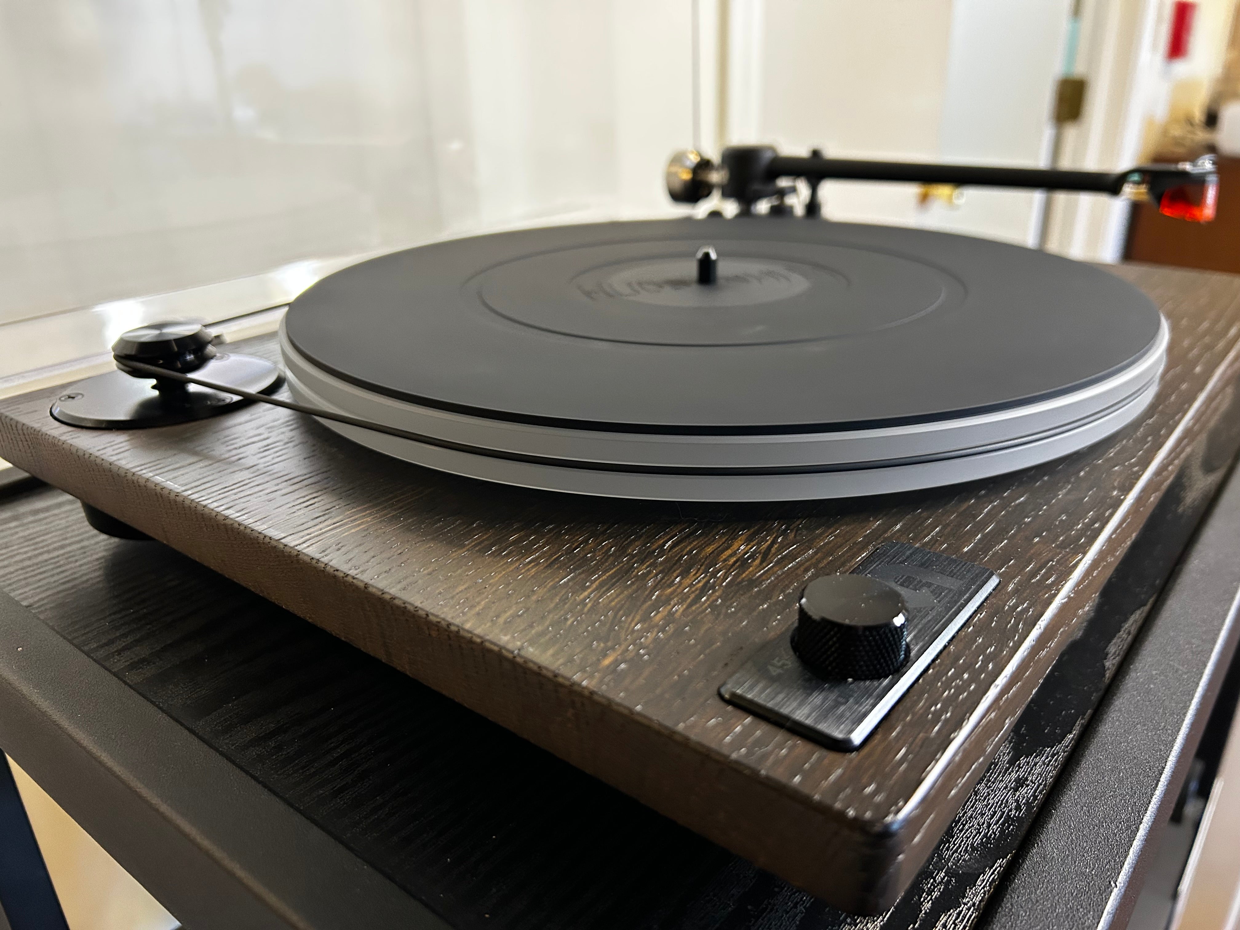 Here we have the company's flagship model, the U-Turn Orbit Theory. It features their latest and greatest OA-3 Pro tonearm design with one-piece magnesium arm tube and improved counterweight stability. The motor is electronically controlled for both 33 and 45 RPM speeds - easily selectable from the nicely placed Power/Speed knob located on the left side of the plinth.