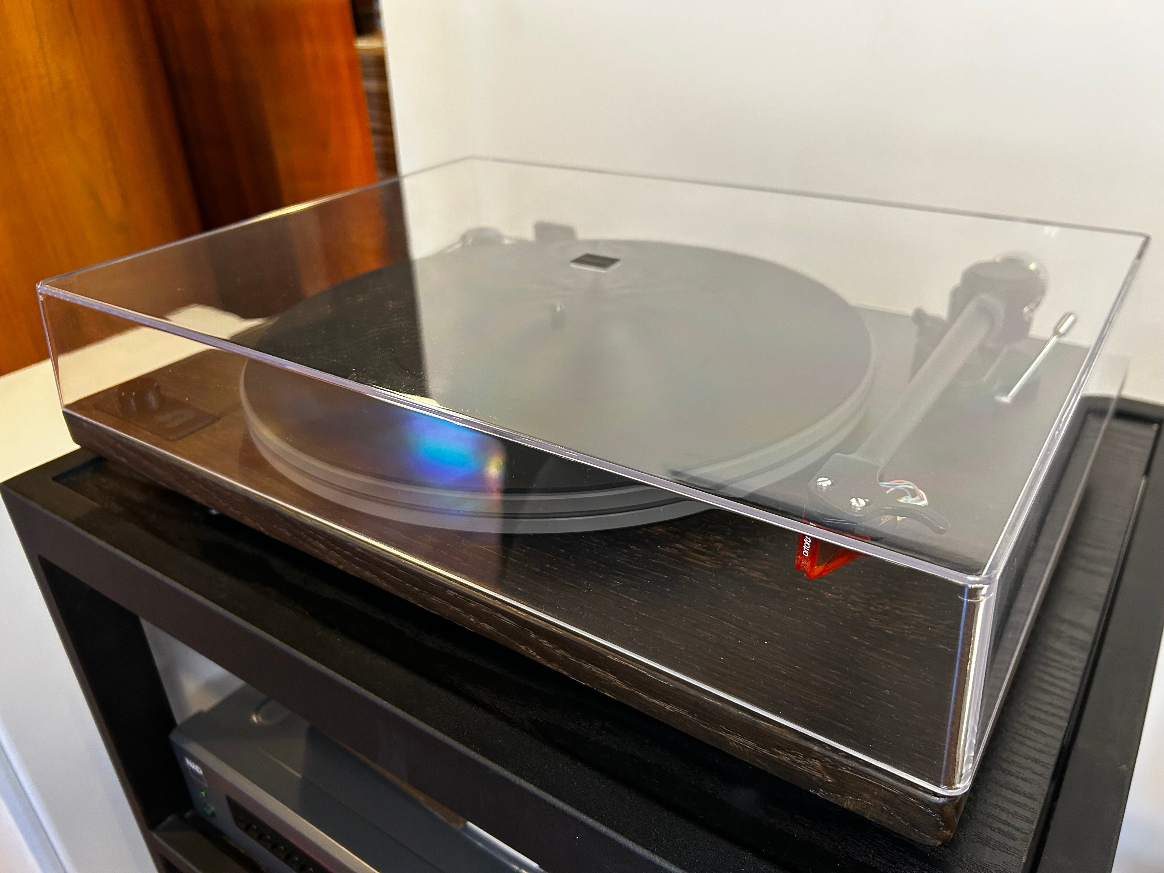 The plinth itself is made from MDF and wrapped in a lovely walnut veneer. It's relatively sense and resonant-free.